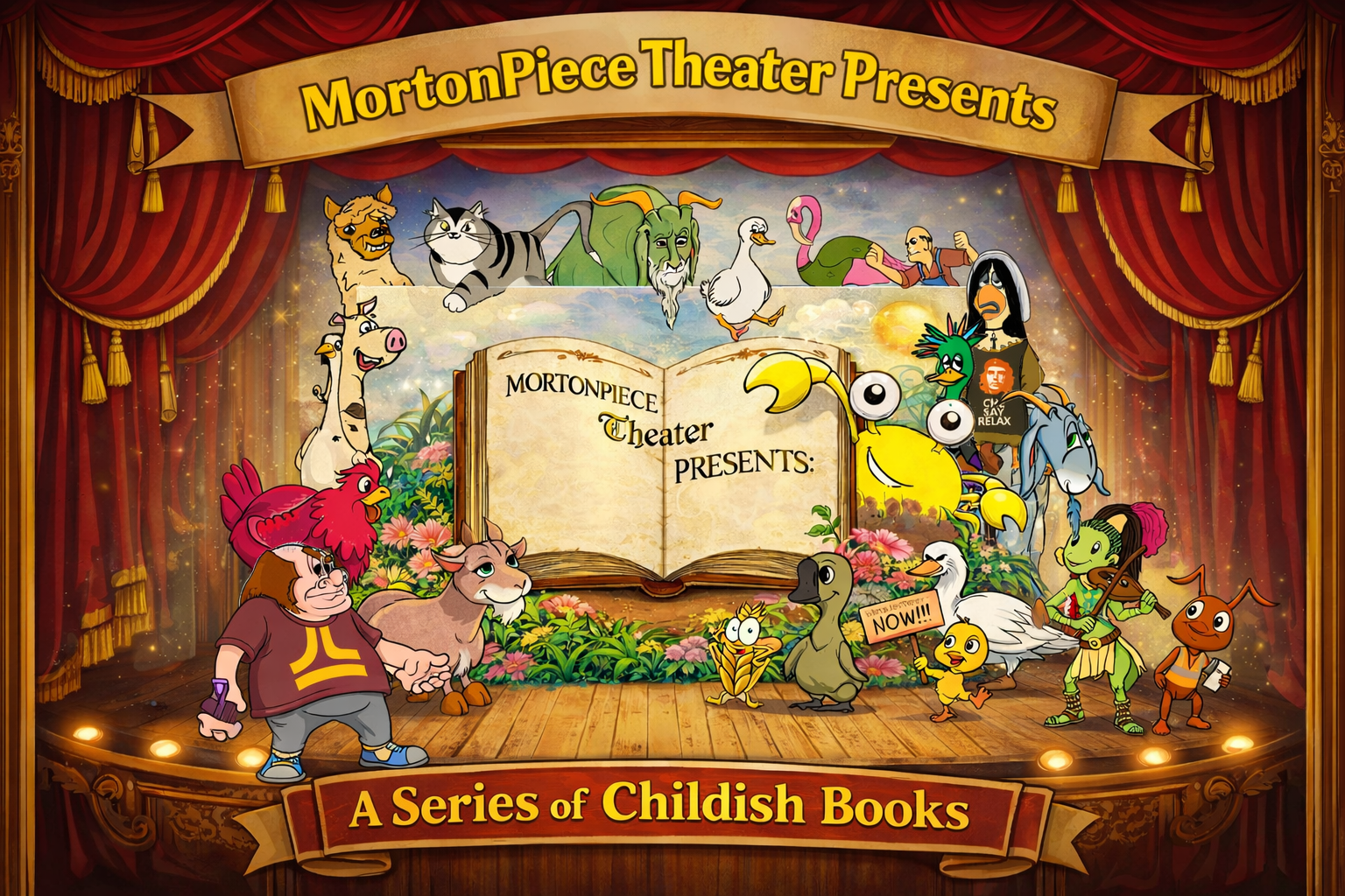 MortonPiece Theater Presents is the series of Childish books that accompany SK Morton's anything-but-immensely popular MortonPiece Theater videos hosted by Morty D Crab.